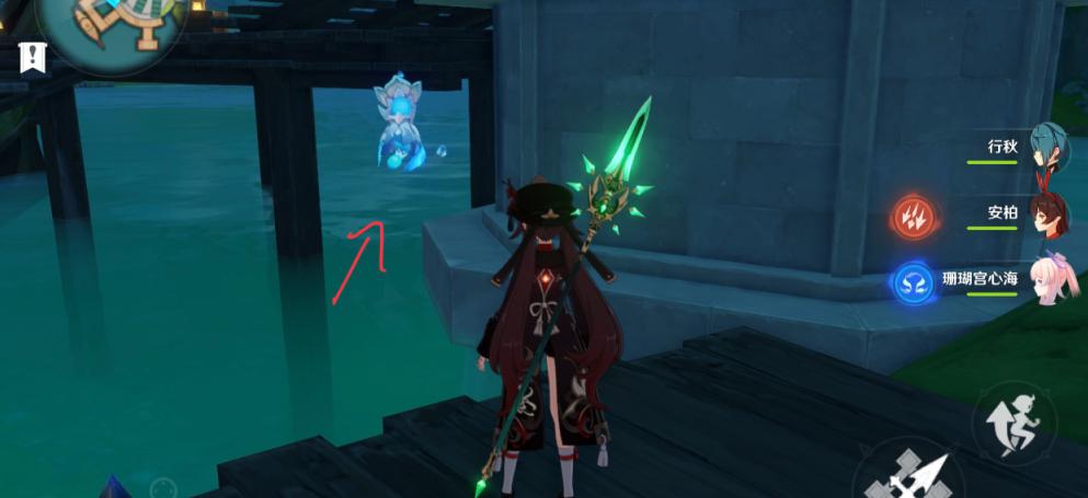 2、根据提示转头去港口,调一下时间,调整到黄昏,下图所示箭头指向的位置有个宝箱。开启箱子可以获得一个谜语纸条;