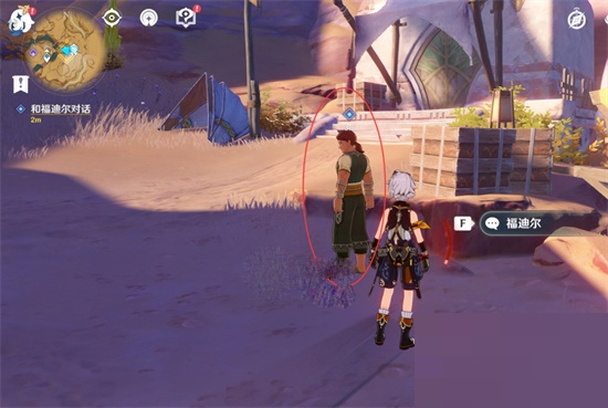 4.对话完,我们回到一开始的NPC位置,靠近后触发对话。