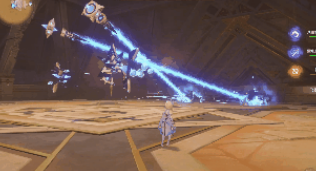 也可以破坏元件(破坏一个即可)并在元件修复时使用雷属性攻击来造成过载瘫痪效果,如果长时间没有隐身,boss便会释放一次全场的aoe攻击并进入过载瘫痪效果。
