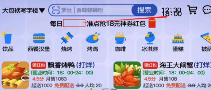 2、然后进入点菜界面,拖动中间的【18:00】到【12:30】上,店铺就可以开业了