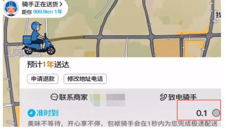 5、然后进入配送页面,向上滑动下方的信息栏,选择准时到服务,外卖员就可以一秒送达,完成任务