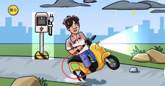 直接摩擦电瓶车的充电处即可过关,摩擦生电!