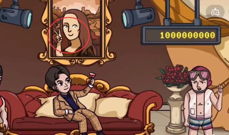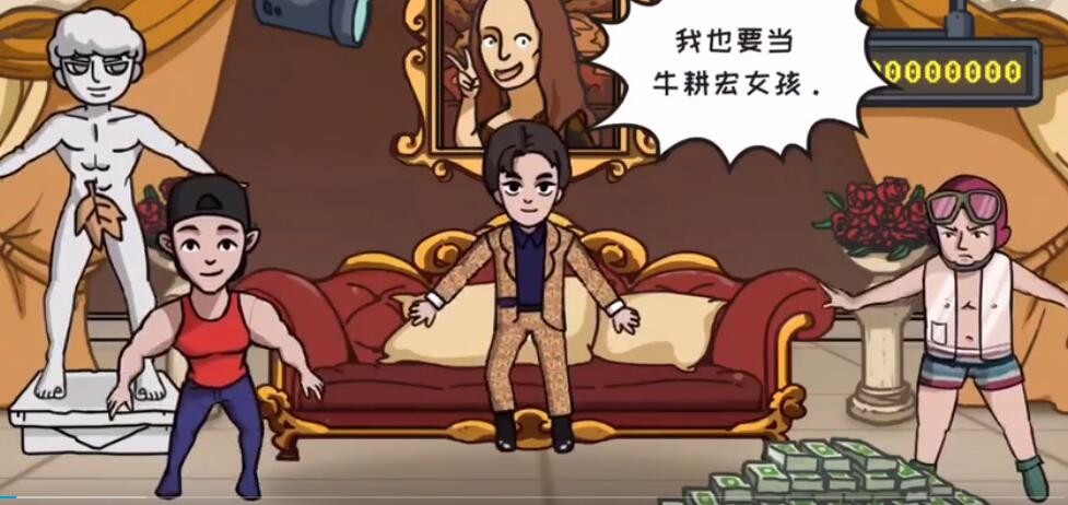 4、接着让画里的女孩出来做刘畊宏女孩,然后画框掉下来就把钱都花光了