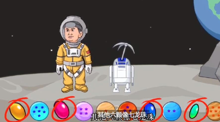 1、点击钩子和机器组合,然后将天上的“宝石”都拖下来,获取了六颗龙珠,少一颗三星龙珠