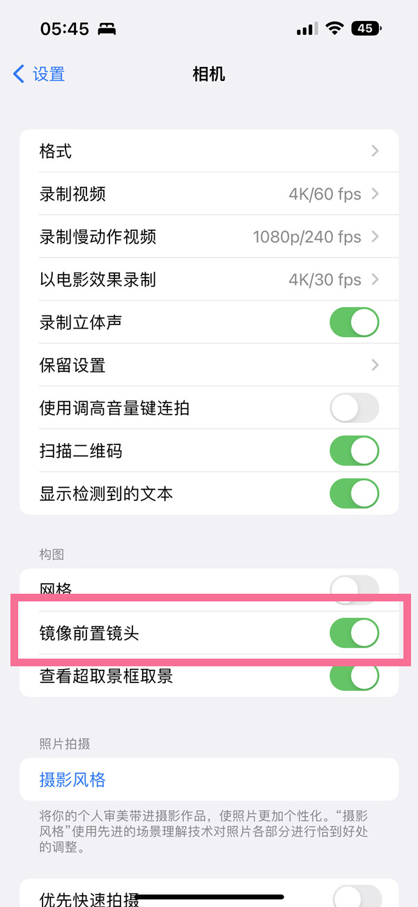 ios16怎么设置自拍不反?