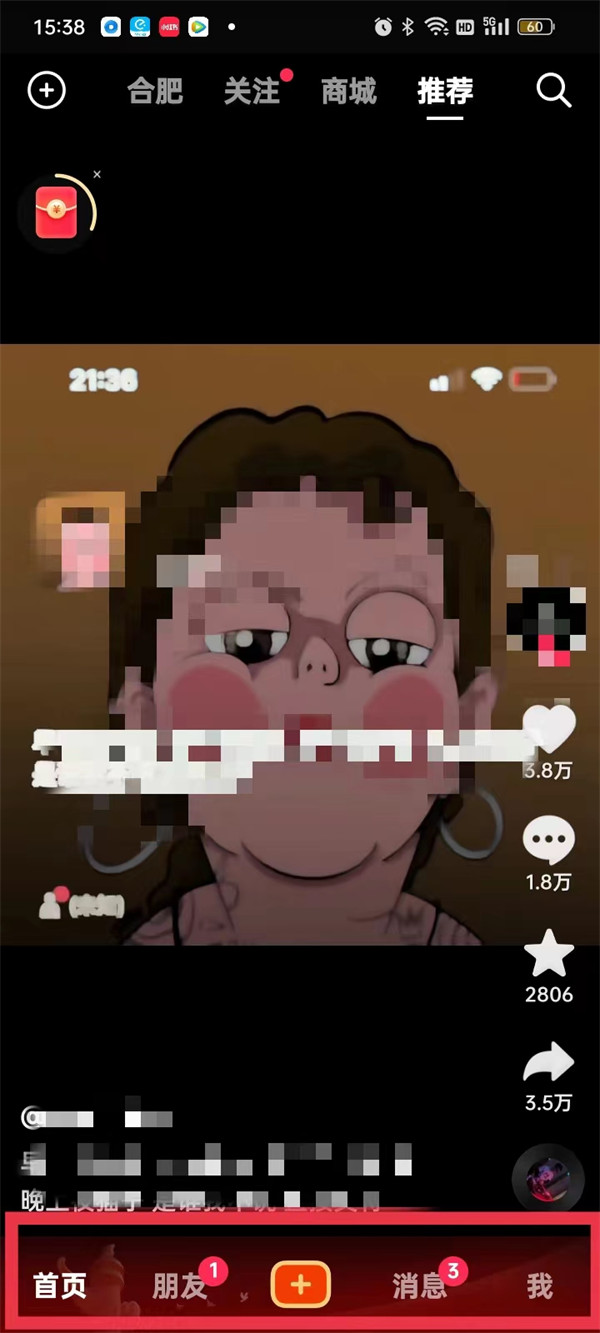 由于国庆的到来,同时也是为了喜迎第二十次全国代表大会的召开,抖音系统更新了新的版本,自动更新的新皮肤,所有用户的底部导航栏变成了红色背景,同时+号按钮也做了鲜艳的红色标识。