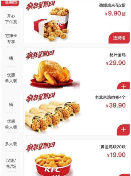 不知道大家有没有参加今天的肯德基疯狂星期四活动呢?本次活动有鸡米花,蜜汁全鸡、鸡肉卷等等,小伙伴们准备好买哪个了吗?接下来就让小编为你详细介绍一下肯德基疯狂星期四10.13的菜单及点餐方法吧!