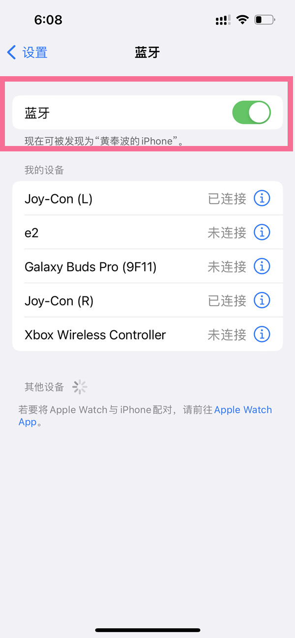 也可以从屏幕刘海右边下滑打开控制中心,点击蓝牙图标开启即可。