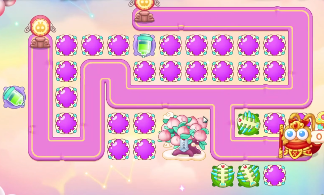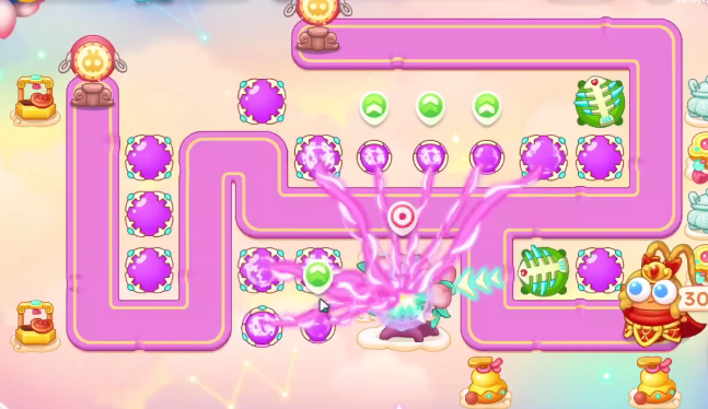1、本关能够使用的炮塔是:毒针、魔法球、鱼刺、多重箭、闪电炮,我们这一关主要使用鱼刺和魔法球。