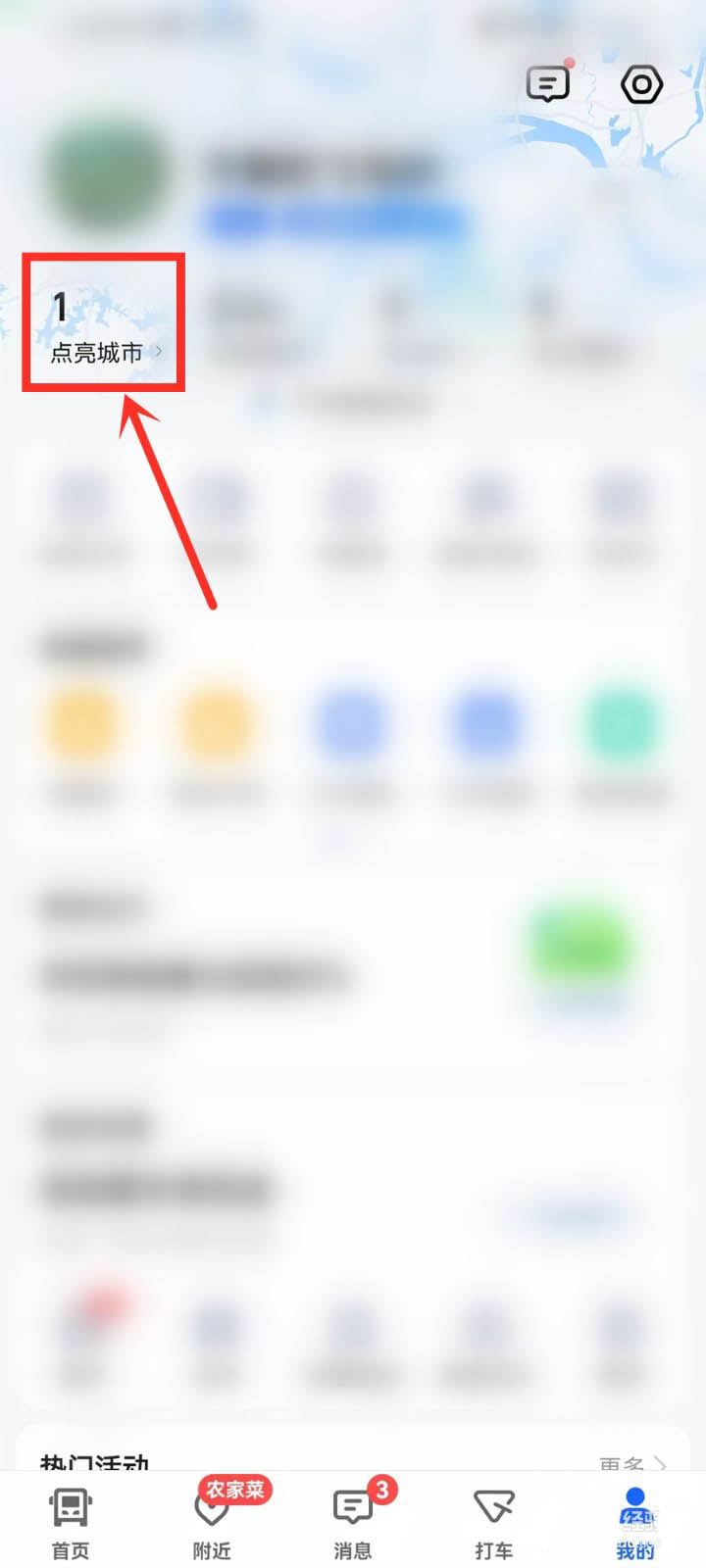 打开app我的页面,点击上方点亮城市选项。