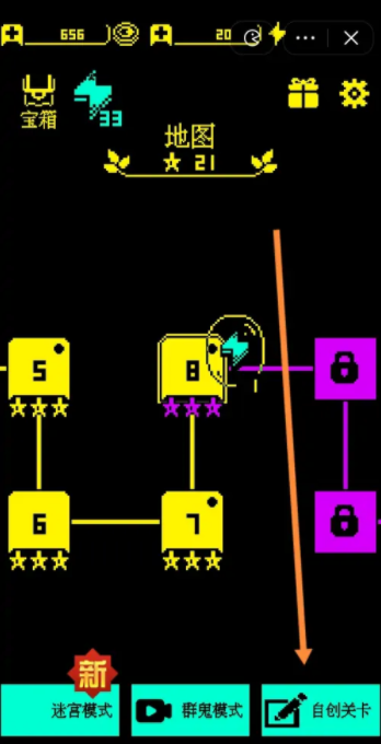 第3关。我要吃金豆免广告版是一款复古像素风格的休闲冒险游戏。我要吃金豆第三关中会有鬼出现的,在迷宫的出口左边。