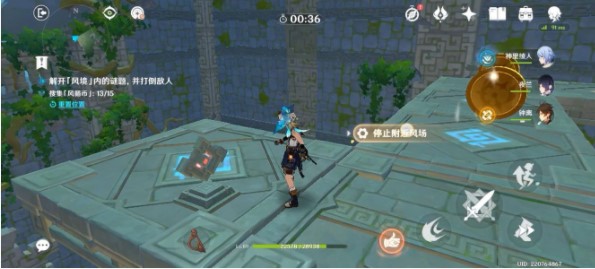 2.上台阶后鼓动附近风场后,按路线转一圈捡完金币到达栏风枢处,点击变换风场方向,拾取上方硬币。