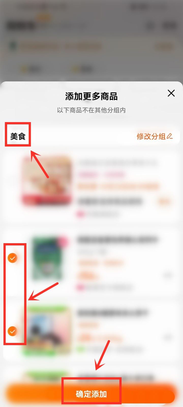 输入分组名称,勾选分组商品,然后点击底部确定添加按钮即可。