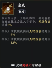 帝女生而贵,王姬礼亦殊。孙尚香将自身血脉之力注入弓箭中,无双伤害提升6%。
