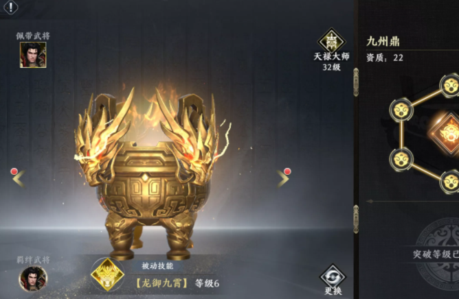 吕布的宝物为九州鼎,提供吕布的属性可谓是非常之大的,九州鼎聚纳九州龙气,当你控制住任何目标时,九州鼎上的金龙便会吐纳龙气,使你获得52%的伤害加成,持续4秒,该效果有12(14→12)秒的冷却时间。【吕布羁绊】该效果触发的冷却时间缩短至12秒,宝物的再一次伤害加成,使吕布伤害的收益来到最大化,极短的冷却时间,超高的爆发伤害,专属宝物让吕布成为战神之神!