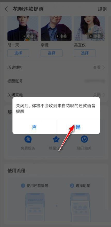 点击上方的花呗来电。