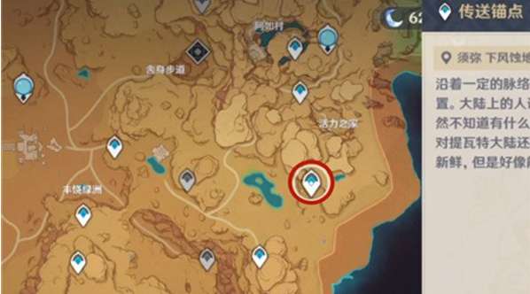1、传送到须弥沙漠-下风蚀地传送锚点。