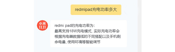 redmipad充电功率最高支持18W充电模式,实际充电功率会根据充电器数据线的不同搭配以及手机剩余电量、使用环境等智能调节。