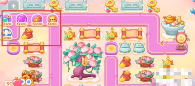 3、之后下方有位置就放置下图的炮塔,全部升满级之后锁定蟠桃树。
