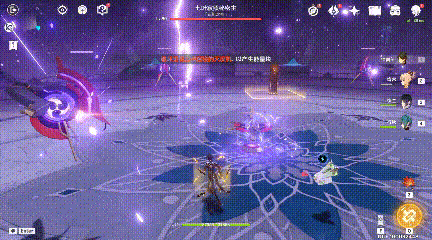 当boss的护盾被打掉时,boss会聚集力量释放技能「刹那生灭」,并在场地中央召唤4个雷属性的机械机关,机械机关会持续对角色进行攻击。其中,大型机关在地面,其余3个机关在半空中,如果不在限定时间(30s)内击破零件并收集能量打断boss,那么boss将强制秒杀场上角色(联机效果暂时未知)。