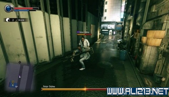 建议拾取自行车攻击大吾,因为这样攻击威力比较大。