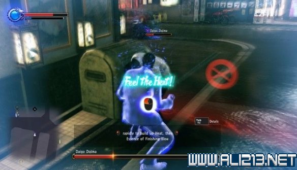 在最后,大吾血量很低的时候,触发大招,释放大招不难,首先,连续按鼠标左键给蓝色能量条充能(血条下方),充满能量之后,按鼠标右键释放大招。