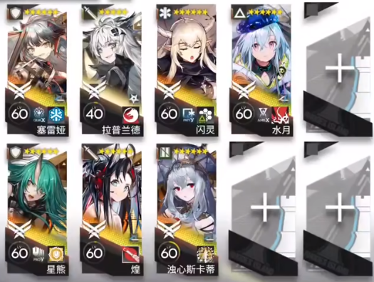 重装:星熊(高防T)、塞雷娅(奶盾)