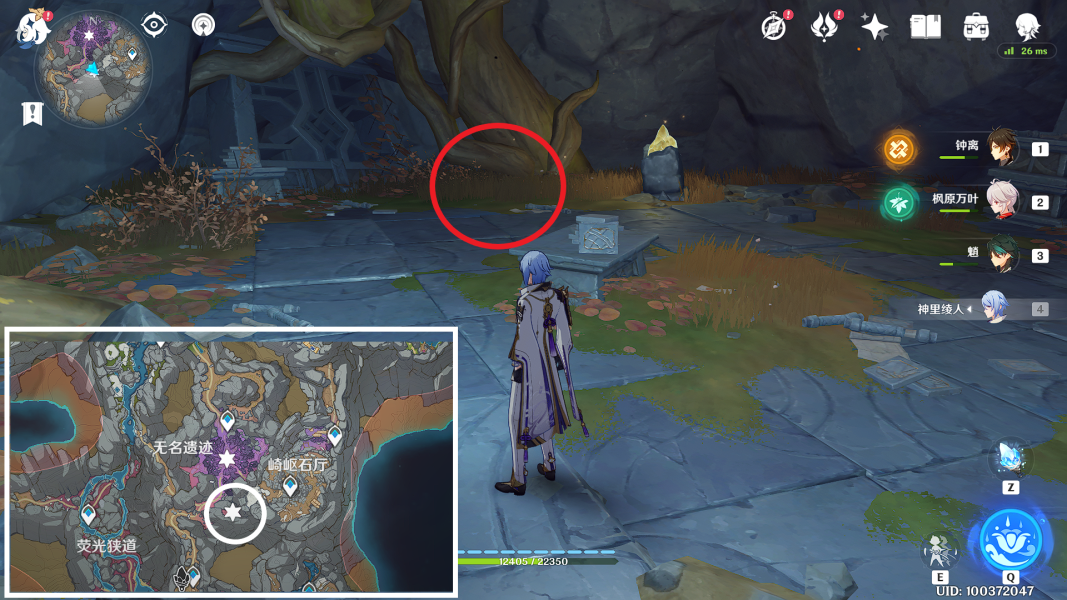 1,位于圣遗物副本旁边的坑内,从这里下去走两步就能看见了