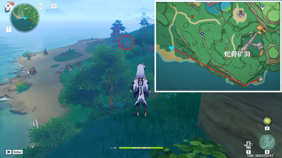 1,来到荒海传送点,飞到对面的愚人众处