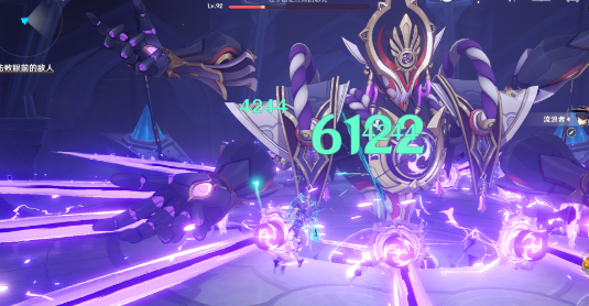 在全是紫气的房间打完怪,靠近绿色的树叶状传送,再传送一次,打掉boss,散兵可以借助e技能升空+空格键拉升高度,躲boss技能。