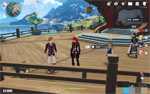 在望舒客栈观景平台上,与枫丹商人兰达对话接取任务。