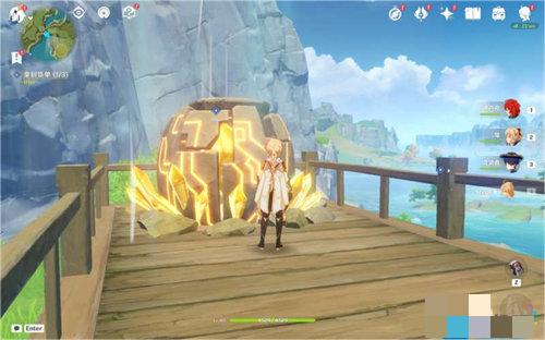 传送至璃月石门处锚点,用岩主的元素战技激活一旁的机关,开启风场。