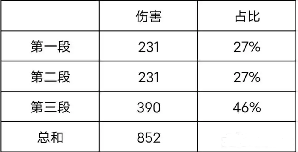 2、在三次攻击都命中的情况下,驺吾可造成852的伤害。而其中第三段占了46%的伤害,所以想要将伤害打满必须让第三段伤害命中。
