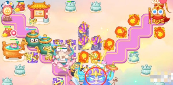 1、本关能够使用的炮塔是:毒针、船锚、飞机、火瓶、雷达、导弹,这一关我们主要用船锚和火瓶输出。