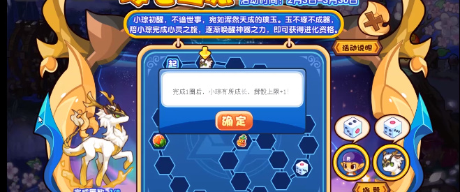 1.投掷筛子,走完8圈即可解锁瑶鹿二阶:琼鹿。