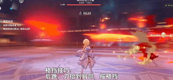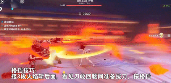 格挡技巧:在3段火焰斩后面,就会放这个技能,收刀在腰间时,按格挡。