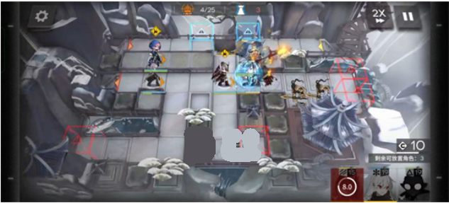 之后部署伊桑→ff0朝下。下面有个铜镜部署晓歌↓和仇白平a打掉,撤退晓歌。等右边3怪来,1倍速,先血怒,琴柳,仇白技能。仇白技能好了就开第二次。铁矛头来了开蓝毒技能,部署另外2干员打掉。