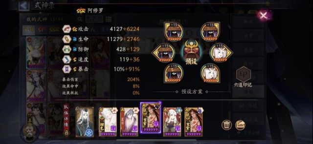 -2号输出:阿修罗、须佐、茨木/海荒、海歌、心荒、心歌/)攻攻暴满暴击速度大于155
