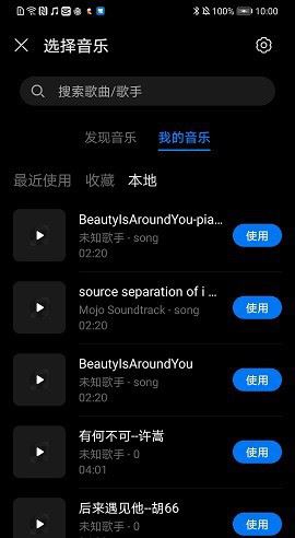 1、导入素材,点击“音频--音乐”,可以添加花瓣剪辑APP提供的音乐(发现音乐)或者本地音乐(我的音乐--本地)
