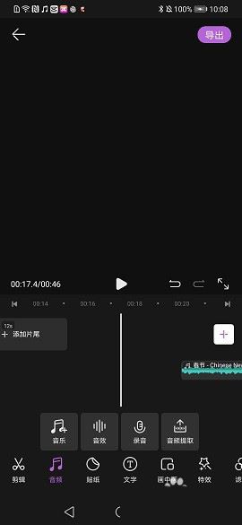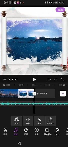 注:如果音频轨道超过主轨道时长,导出的视频后半段画面无内容有音乐,以黑色背景呈现。