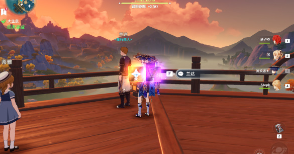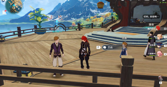 1、在望舒客栈观景平台上,与枫丹商人兰达对话接取任务;