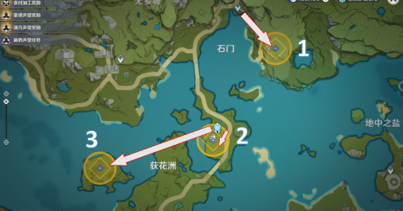2、需要前往三处地点与npc对话拿到货单,路线如下图;