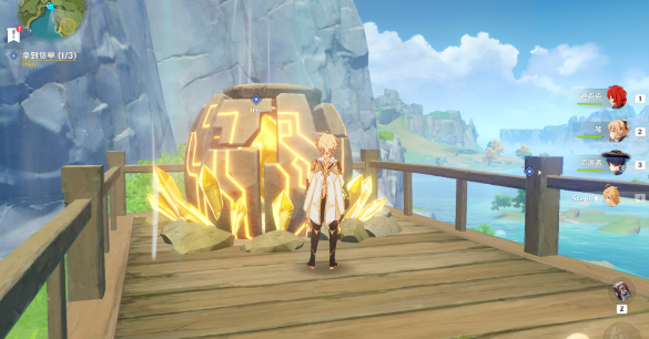 3、传送至璃月石门处锚点,用岩主的元素战技激活一旁的机关,开启风场;