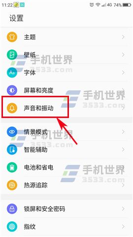 1)首先打开手机【设置】菜单,进入设置菜单后再打开【声音和振动】选项。(如下图)