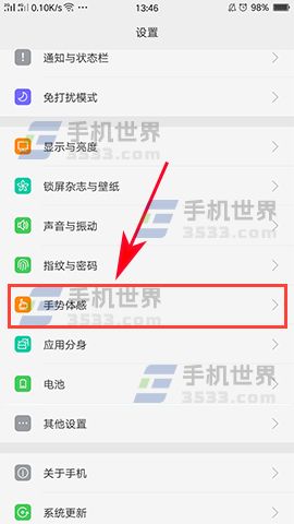 1)打开手机【设置】,进入设置菜单后点击【手势体感】选项。(如下图)
