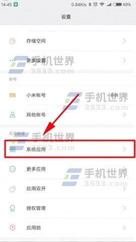 1)我们先打开手机点击进入【设置】选项,接着进入到【系统应用】功能。(如下图)