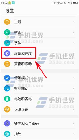 1)首先打开手机【设置】菜单,在设置菜单里面点击打开【屏幕和亮度】选项。(如下图)