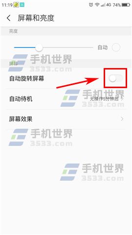 2)然后把【自动旋转屏幕】对应的开关关闭就行了。(如下图)