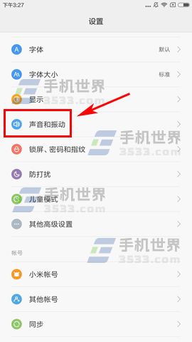1)首先打开手机的【设置】,进入设置菜单后再继续点击【声音和振动】选项。(如下图)