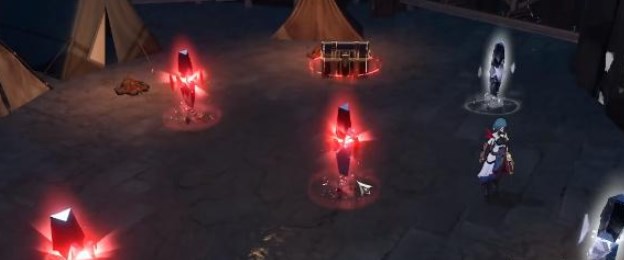 2、这里会有五个尖碑,只有两种属性:物理、火属性(使用对应属性的技能攻击就能点亮尖碑)。